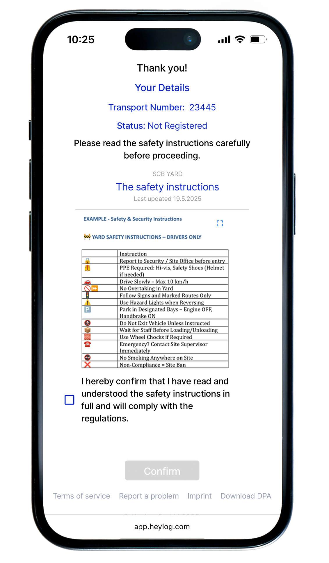 Heylog verwandelt das Smartphone der Fahrer in ein Hofabwicklungstool.