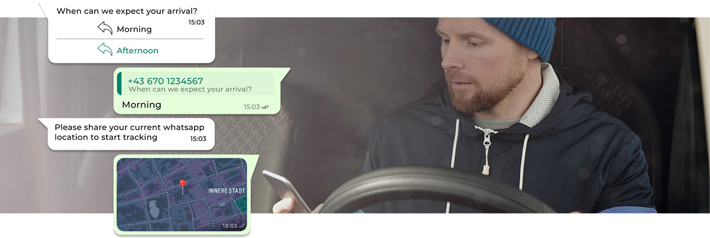 Alles läuft über WhatsApp – ohne App, ohne Sprachbarrieren. Anmeldung, Unterweisung, Navigation und Rampenzuweisung digital im Chat.